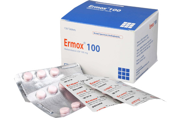 Dosage & Administration: Ermox® 100 mg tablet and Ermox® suspension have the same dosage schedule applies to adults & children. Enterobiasis : A single tablet or 1 teaspoonful (5 ml) of the suspension. Ascariasis, Ancylostomiasis, Trichuriasis : 2 tablets in two divided doses for 3 consecutive days or 2 teaspoonful (10 ml) in two divided doses for 3 consecutive days. Taeniasis & strongyloidiasis : Adults : 2 tablets twice daily for 3 consecutive days. Children: 1 tablet or 1 teaspoonful (5 ml) twice daily for 3 consecutive days.